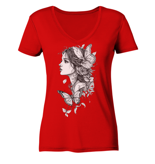Schmetterlings Frau nur Vorderseiten Druck - Ladies V-Neck Shirt