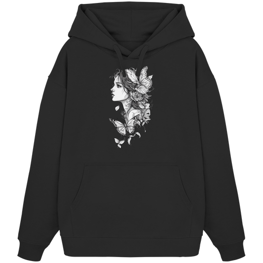 Schmetterlings Frau nur Vorderseiten Druck - Organic Oversize Hoodie