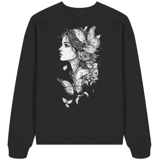 Schmetterlings Frau nur Vorderseiten Druck - Organic Oversize Sweatshirt