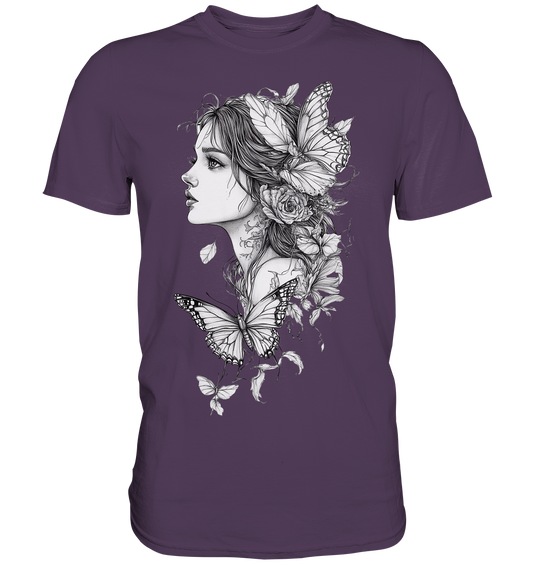 Schmetterlings Frau nur Vorderseiten Druck - Premium Shirt