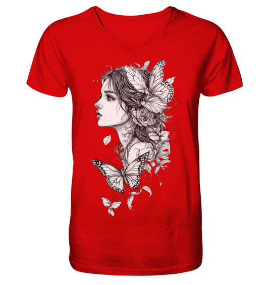 Schmetterlings Frau nur Vorderseiten Druck - V-Neck Shirt