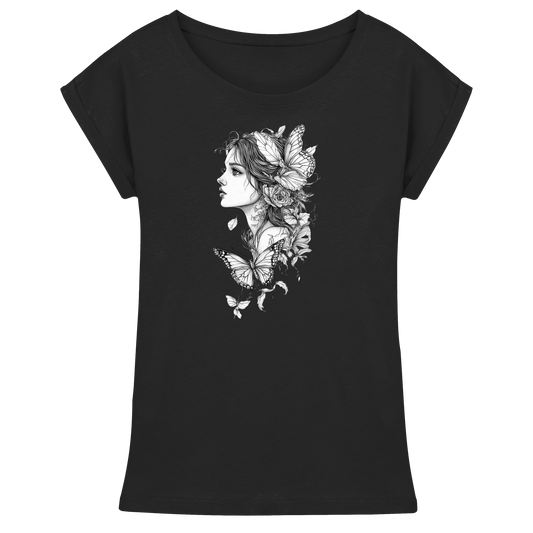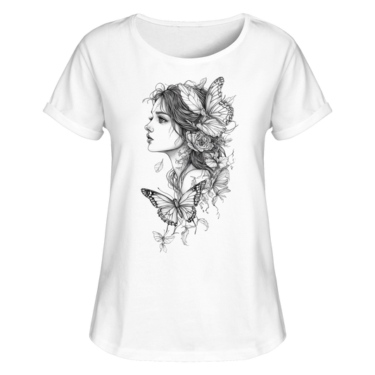 Schmetterlings Frau nur Vorderseiten Druck - Womens Roll-Up T-Shirt